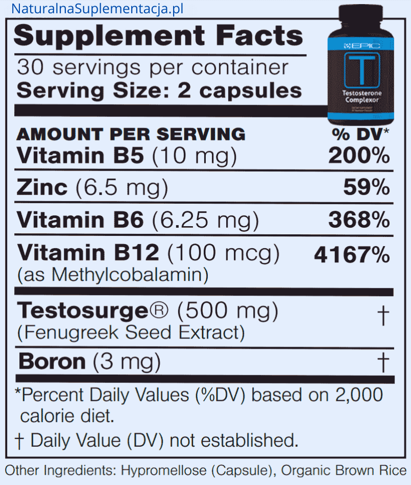 BEPIC-T dodatkowo oprócz TestoSurge® zawiera również kluczowe mikroelementy i witaminy, które wspierają układ hormonalny i energetyczny: